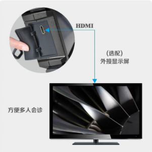 | HDMI同屏输出 通过HDMI接口外接显示屏,方便多人会诊,更有利于对现场状况进行准确判断。
