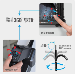 用户可选择电动控制摇杆或者触屏虚拟摇杆,精准控制探头360°全方位转向,同时具备良好的操控体验。也可根据需要配置机械式控制摇  | 旋钮式多功能按键 独特设计的旋钮式多功能按键(已获专利),可通过旋转和按压按键切换、设置菜单功能。