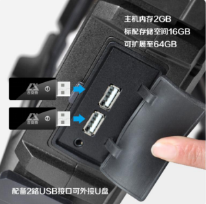 主机标配固态硬盘存储空间16GB,可扩展至128GB,具备更大的存储空间,且存取速度更快。配备2路USB接口,可通过外接U盘存储数据。